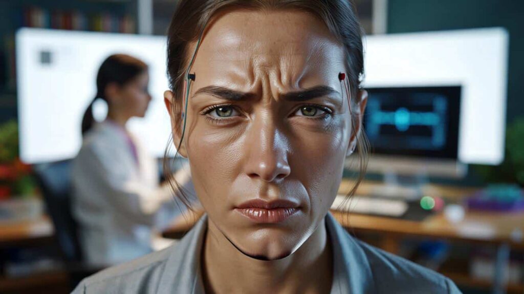 • Facial electromyography (EMG) – a method that uses tiny electrodes on the skin to detect small electrical changes when a muscle contracts. It can pick up activity even when the movement is too subtle to see.